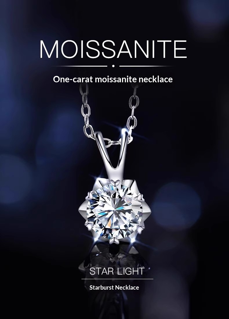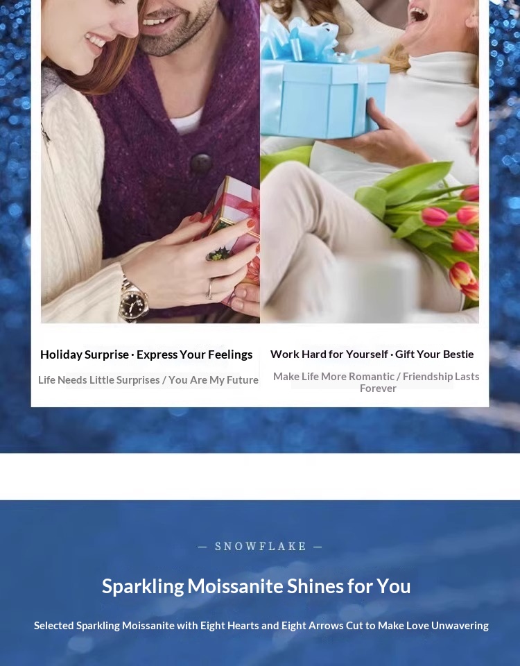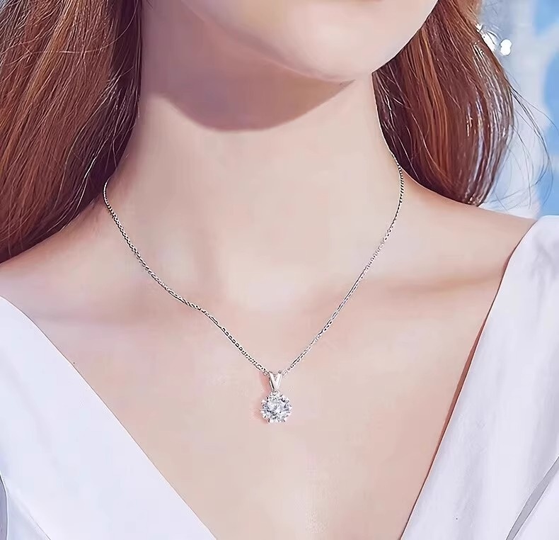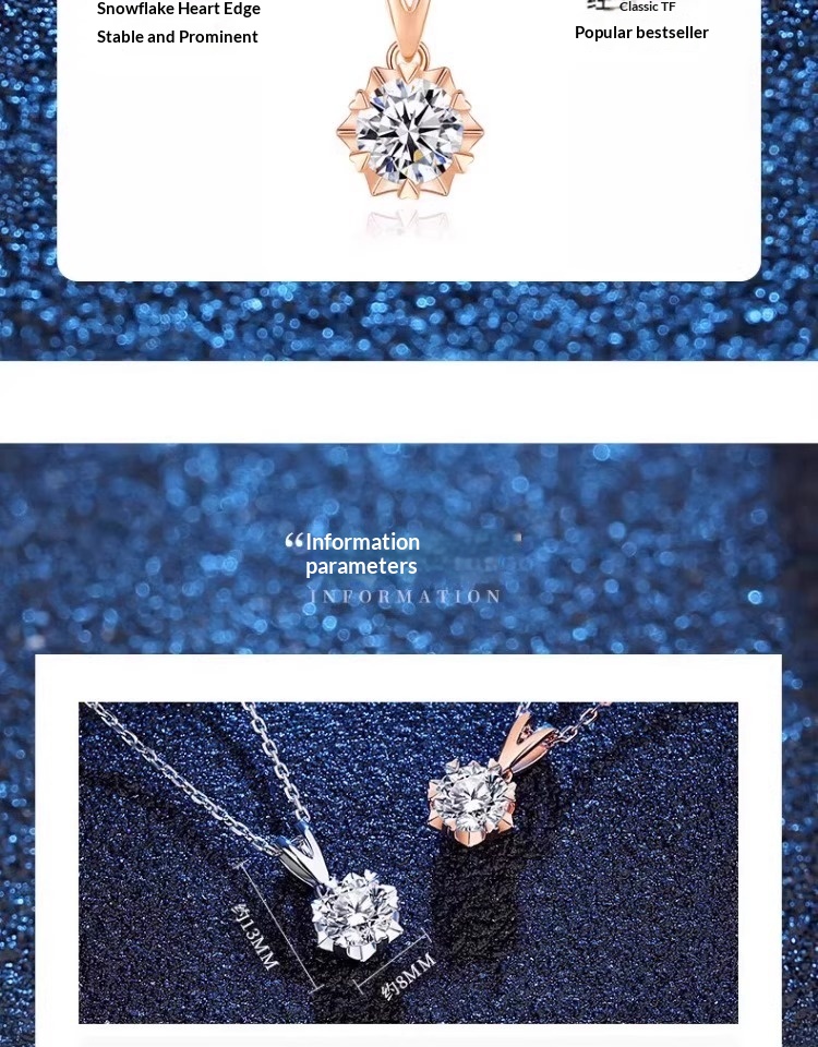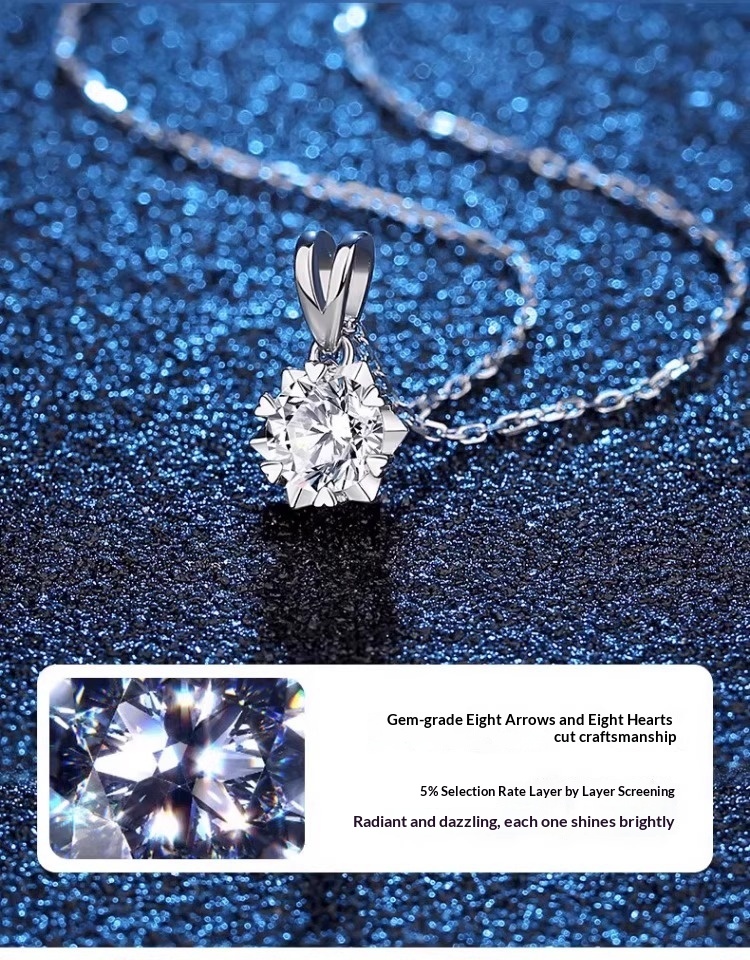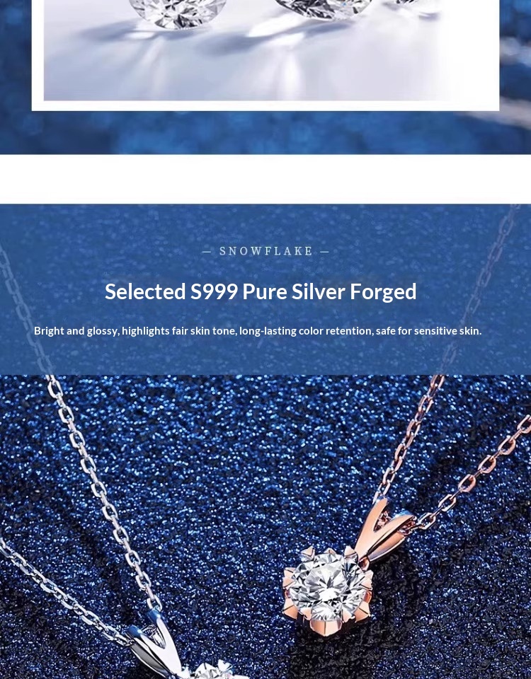 Color: D-color moissanite stud earrings—50 points, D-color moissanite necklace—1 carat, D-color moissanite bracelet—1 carat, D-color moissanite snowflake three-piece set