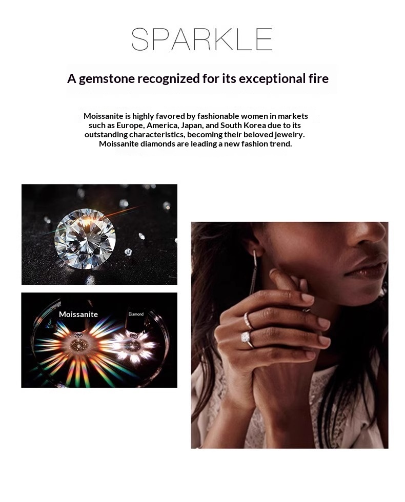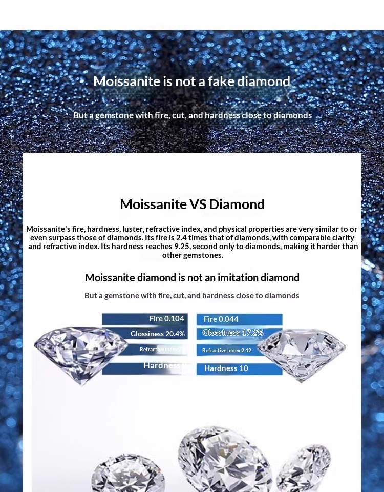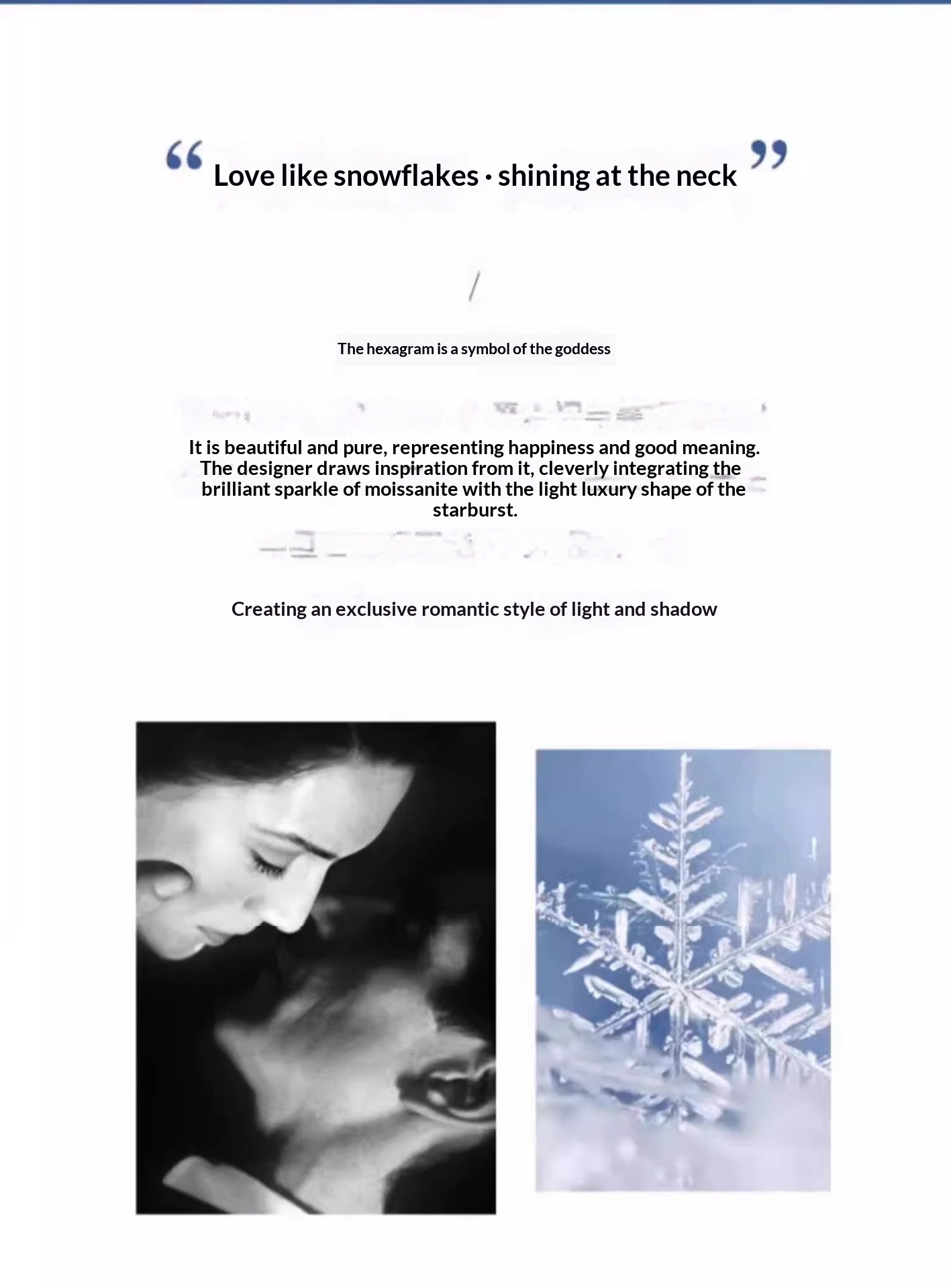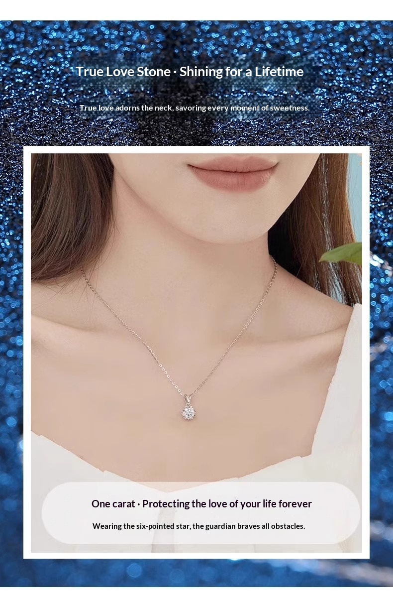 Color: D-color moissanite stud earrings—50 points, D-color moissanite necklace—1 carat, D-color moissanite bracelet—1 carat, D-color moissanite snowflake three-piece set